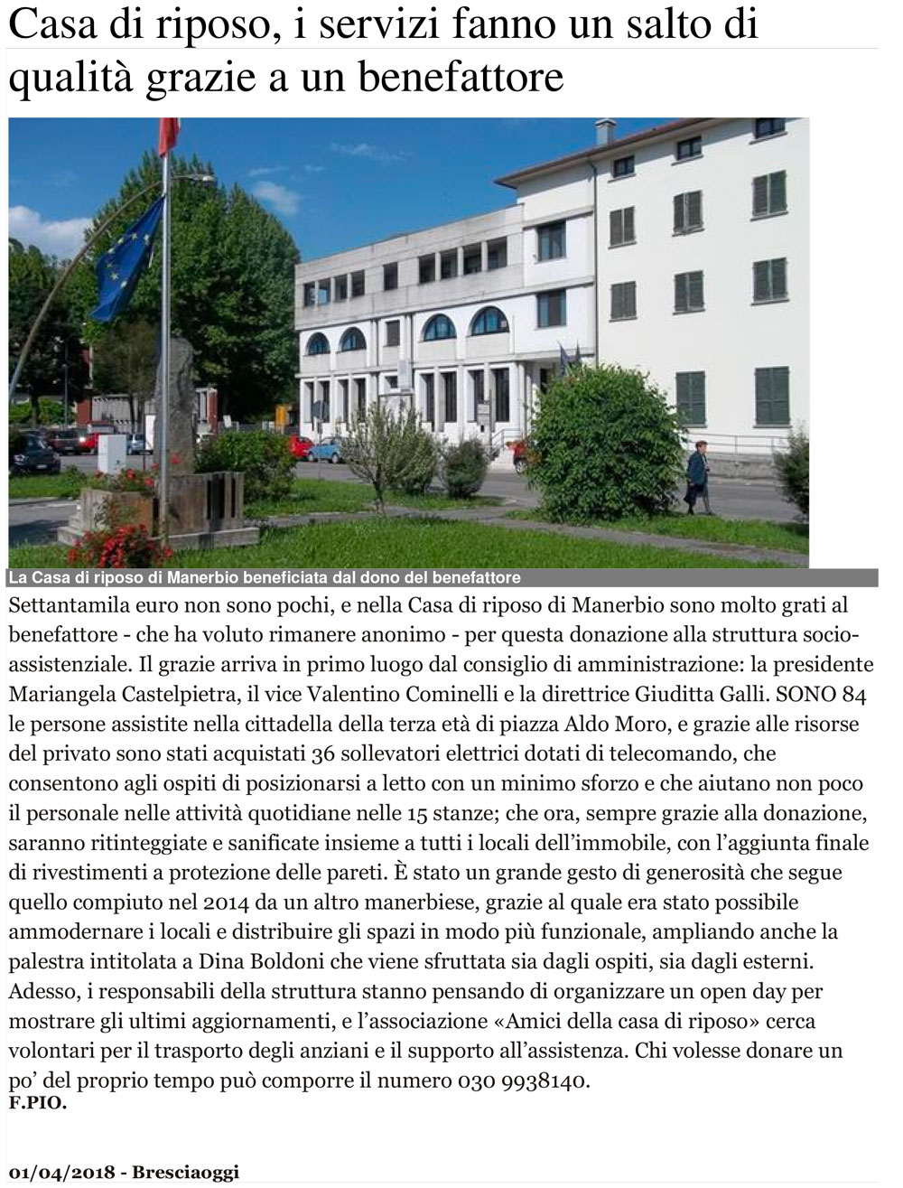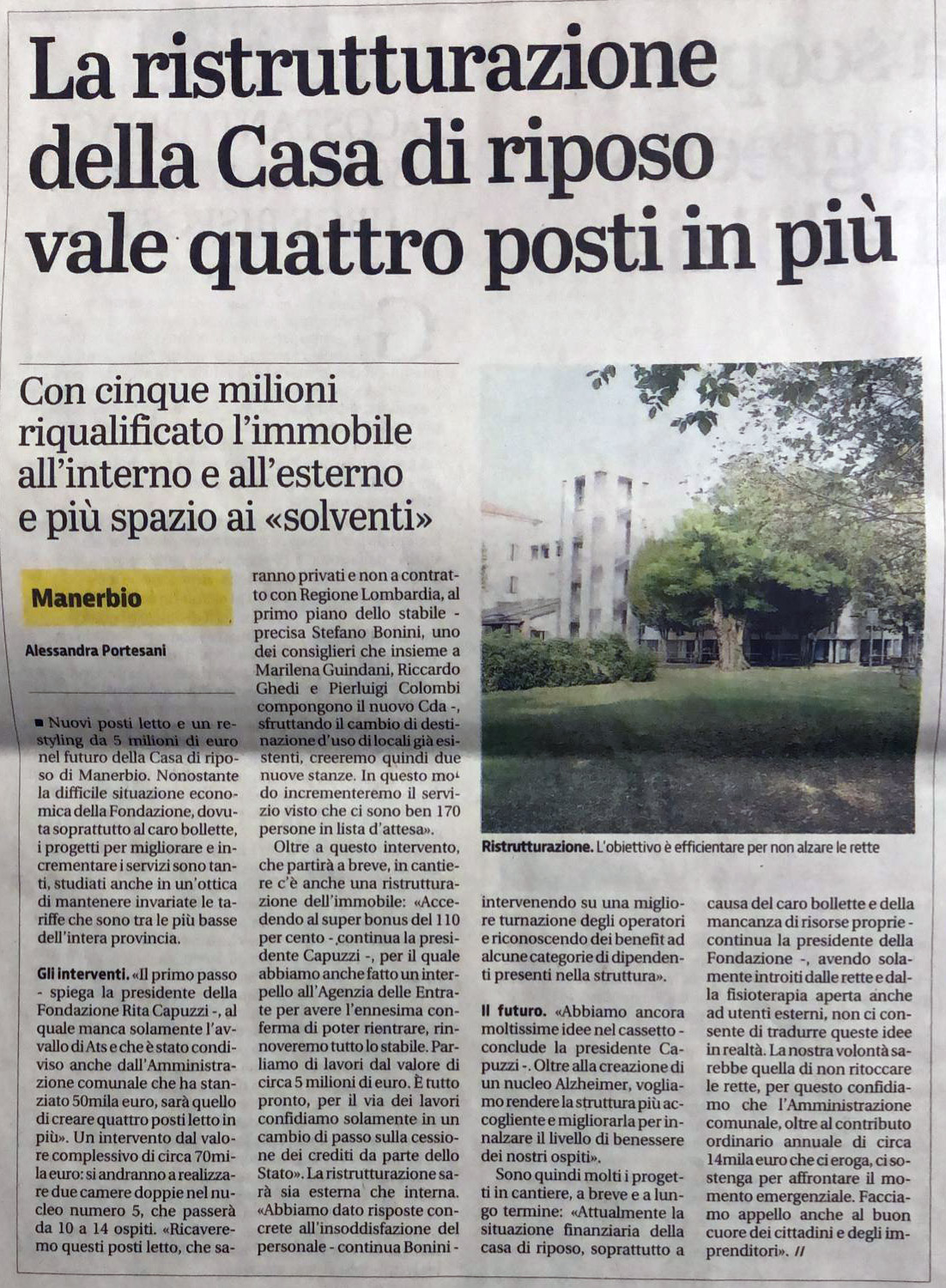 P.zza Aldo Moro, 6/a - 25025 Manerbio (BS) T. 030.9938140 - F. 030/9937769 info@casadiriposomanerbio.it - casadiriposomanerbio@pec.it Codice Fiscale 88000670179 – Partita Iva 00727110983